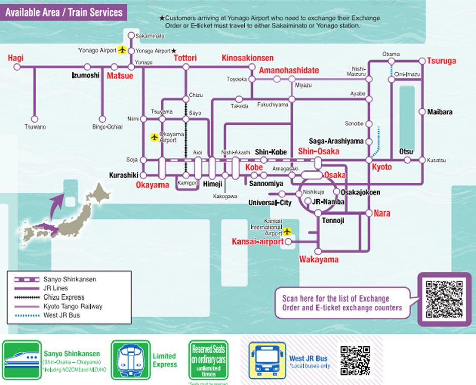 Get unlimited rides from Kansai to San’in (Tottori, Shimane, Hagi) and Okayama !